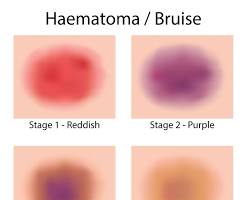 - Discoloration: The injured area may appear red, purple, or black initially, and then turn yellow and green as the blood breaks down.